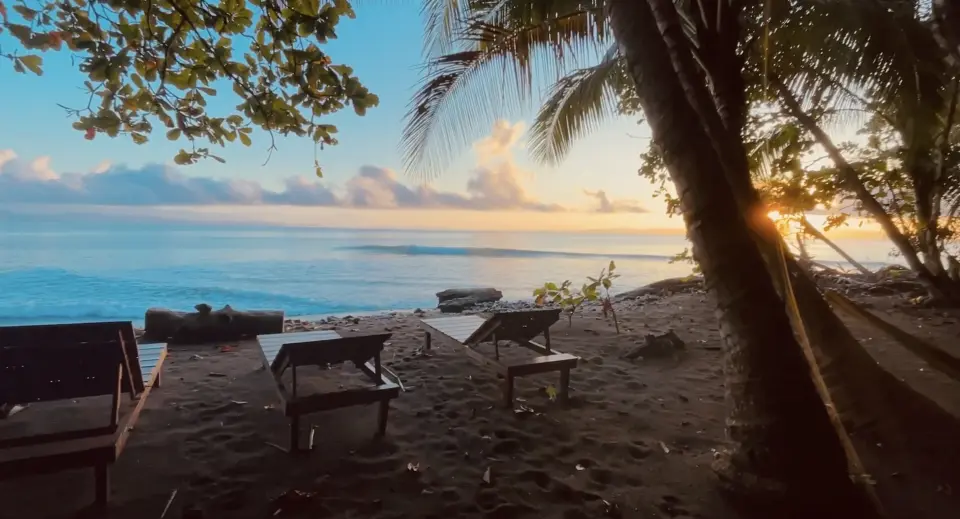 Travel in time to an unbeliavable beachfront paradise immersed in the rainforest with more wildlife on earth while hanging out all day on a pristine beach surfing waves all to yourself